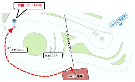 谷田部I.C → 伊奈方面へ右折 → 2つ目の信号を右折 → 2つ目の信号左折→ゴルフ場